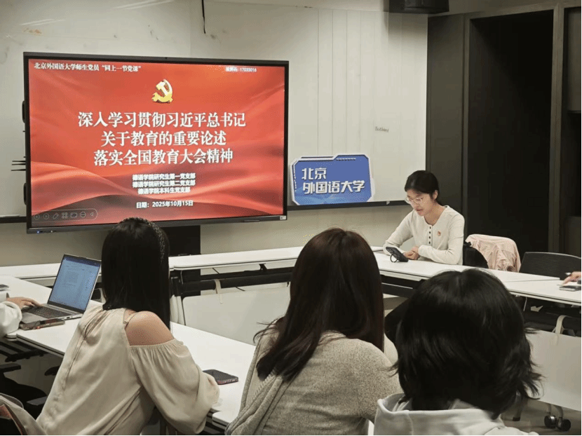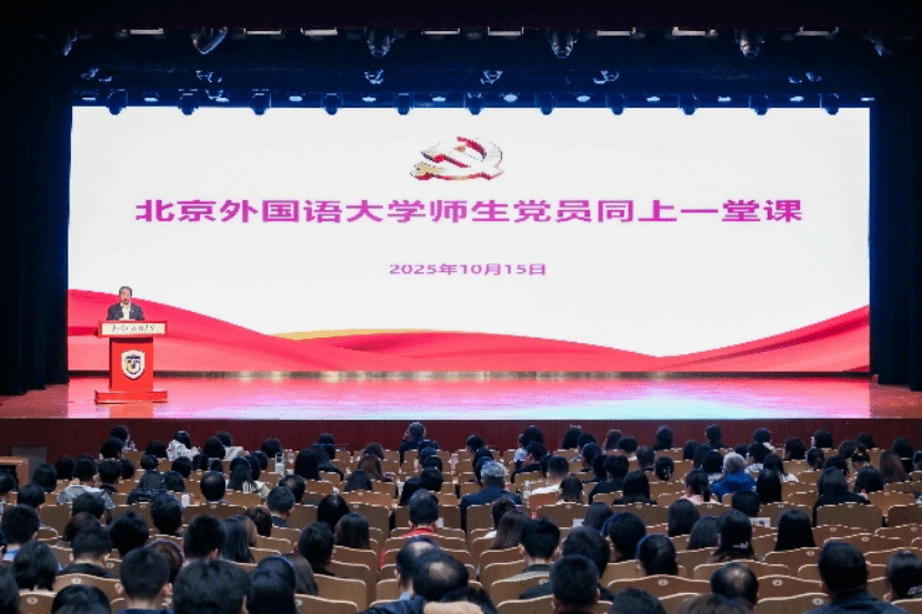 为深入学习贯彻习近平新时代中国特色社会主义思想,尤其是习近平总书记关于教育的重要论述及全国教育大会精神,将思想和行动统一到党中央决策部署、国家战略需求与教育强国建设实践上来,北京外国语大学于2025年10月15日下午举行2025年下半年第一课集中培训,bet365电竞 师生党员在西校区国际大厦报告厅集体学习由教育部党组书记、部长怀进鹏讲授的“深入学习贯彻习近平总书记关于教育的重要论述 落实全国教育大会精神”专题报告。