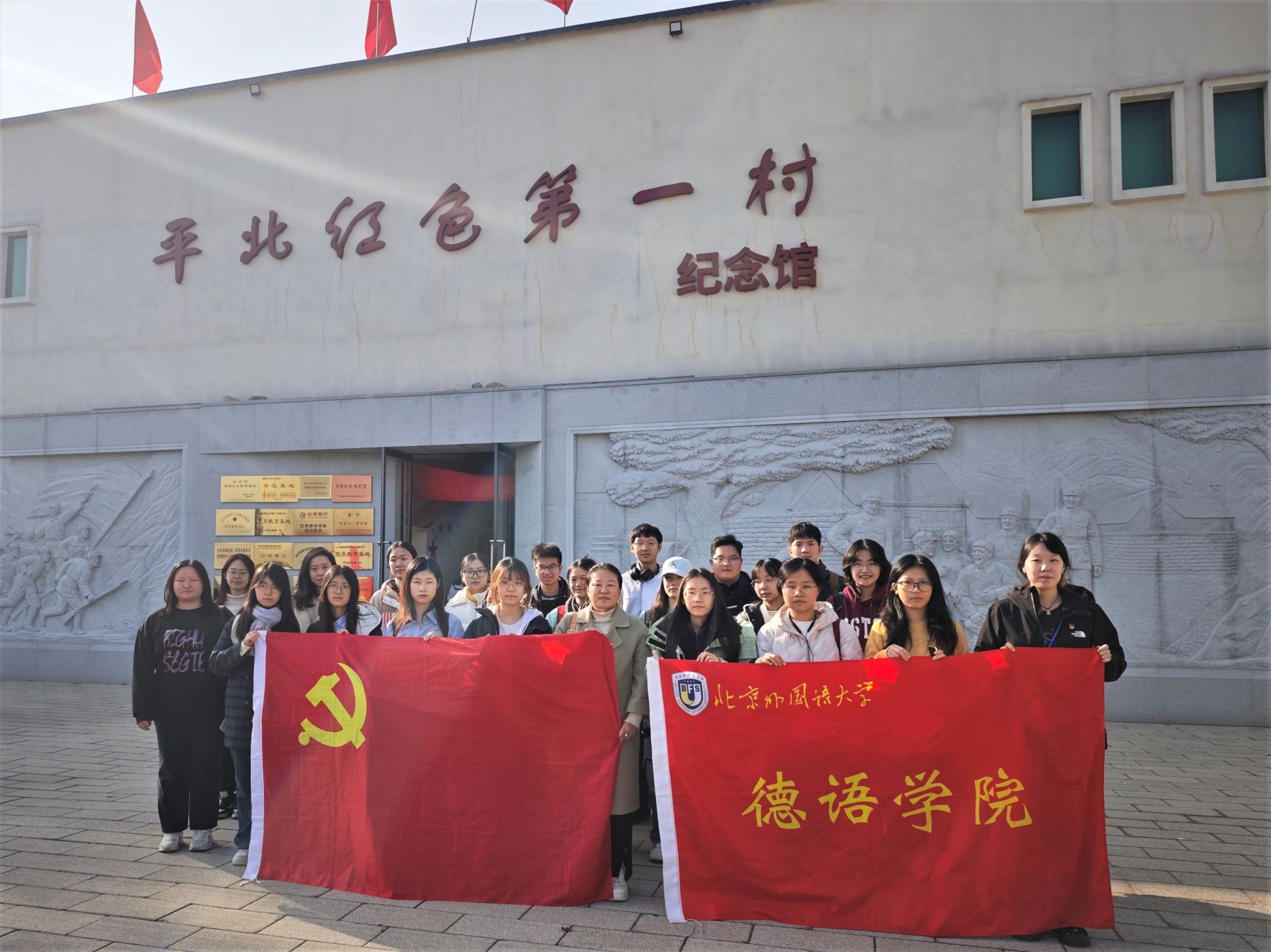 下午,师生一行前往大庄科乡沙塘村“平北红色第一村”红色纪念馆参观学习。纪念馆内陈列着大量珍贵的历史照片、文献资料和革命文物,系统展示了在烽火岁月里,平北地区第一个抗日民主政权——昌延联合县政府在此创建并坚持斗争的光辉历程。展陈内容涵盖了根据地创立、军民团结抗战、生产自救、政权建设等多个方面。同学们通过观看展陈,深入了解了革命先辈的奋斗历史,深刻感悟了他们的理想信念和奉献精神。