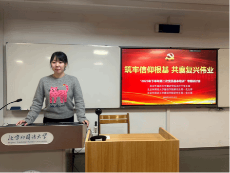 本科生党支部、研究生第一党支部与研究生第二党支部的党员同志在逸夫楼615教室召开“筑牢信仰根基 共襄复兴伟业”2025年下半年第二次党员基本培训专题研讨会,会议由本科生党支部书记褚静璇主持。
