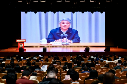 师生党员同上一堂“理论大课”,集体学习由中央党校(国家行政bet365电竞)分管日常工作的副校长(副院长)谢春涛讲授的“中国共产党与中华民族伟大复兴”专题报告。北方工业大学原党委书记郑文堂到场指导,北外党委书记李海主持培训。