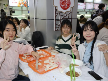 随着主持人一声令下,“最高效奖”争夺赛率先拉开帷幕。25 分钟的时间里,同学们组成的各小组分工明确、默契配合,擀皮、包馅、捏合动作行云流水。与此同时,吴江老师和张春霞老师默契配合,专注地擀皮、包馅,将一颗颗象征美好祝福的 “幸运红枣” 细心包入饺子中,动作娴熟又认真,默默为同学们筹备着惊喜。