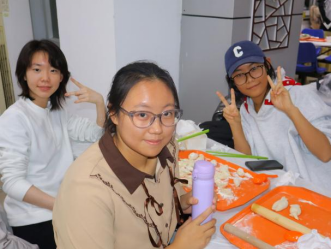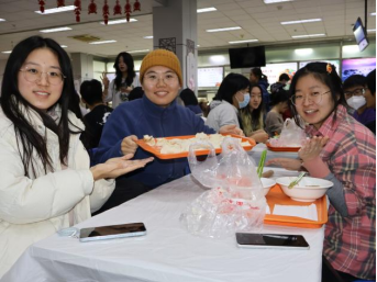 党总支书记吴江、党总支组织委员张春霞、郑修贤老师和外教Annemarie Hezel等老师也来到活动现场,悄悄为同学们准备“幸运惊喜”,在欢声笑语中共赴一场暖冬美食之约。